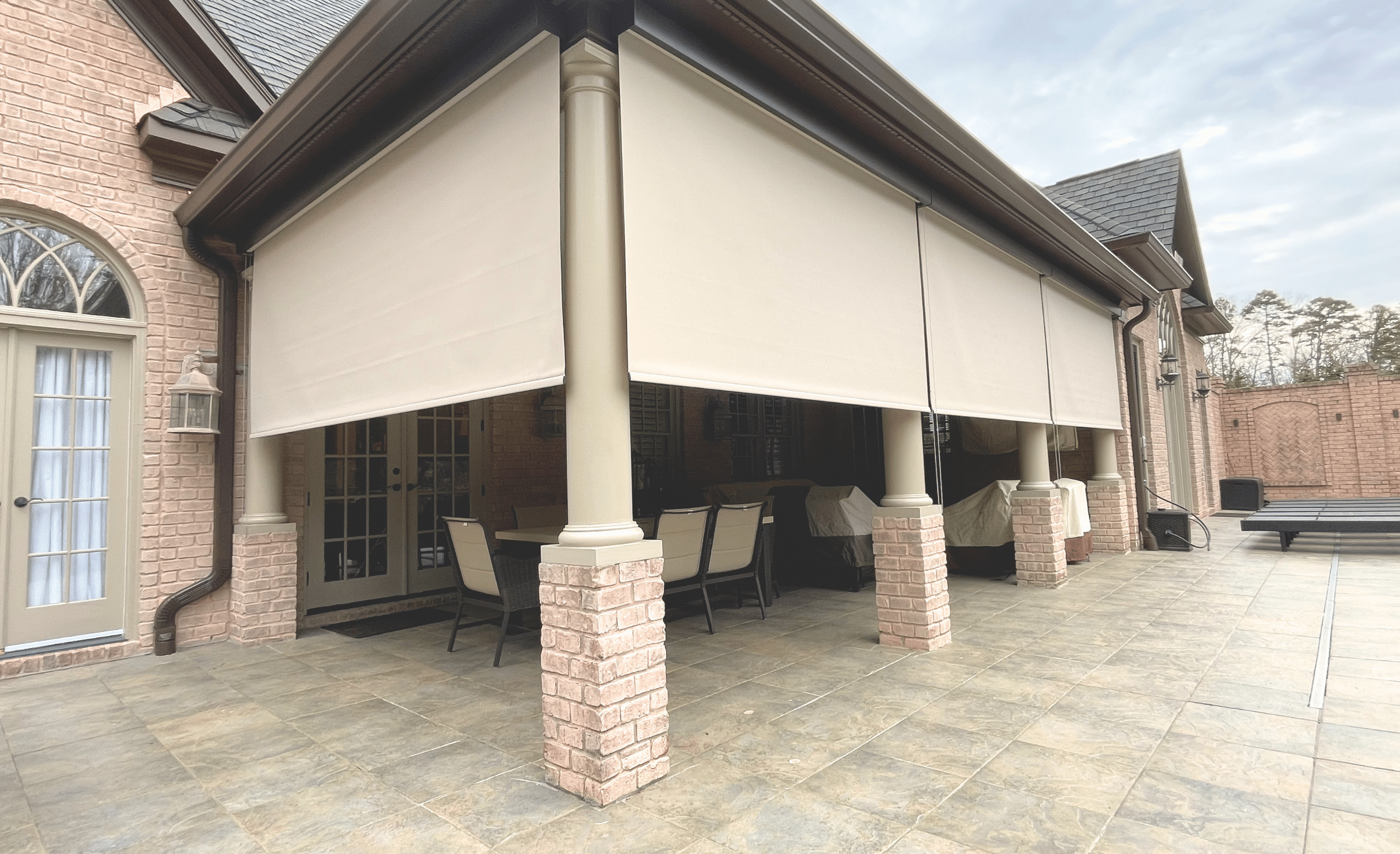 Outdoor patio shades are available in different high-quality materials and styles. Some exterior shades, like solar shades, keep your view clear and protect your space from UV rays. Other window treatments, like natural woven shades, add a textured, natural look to your outdoor living areas.