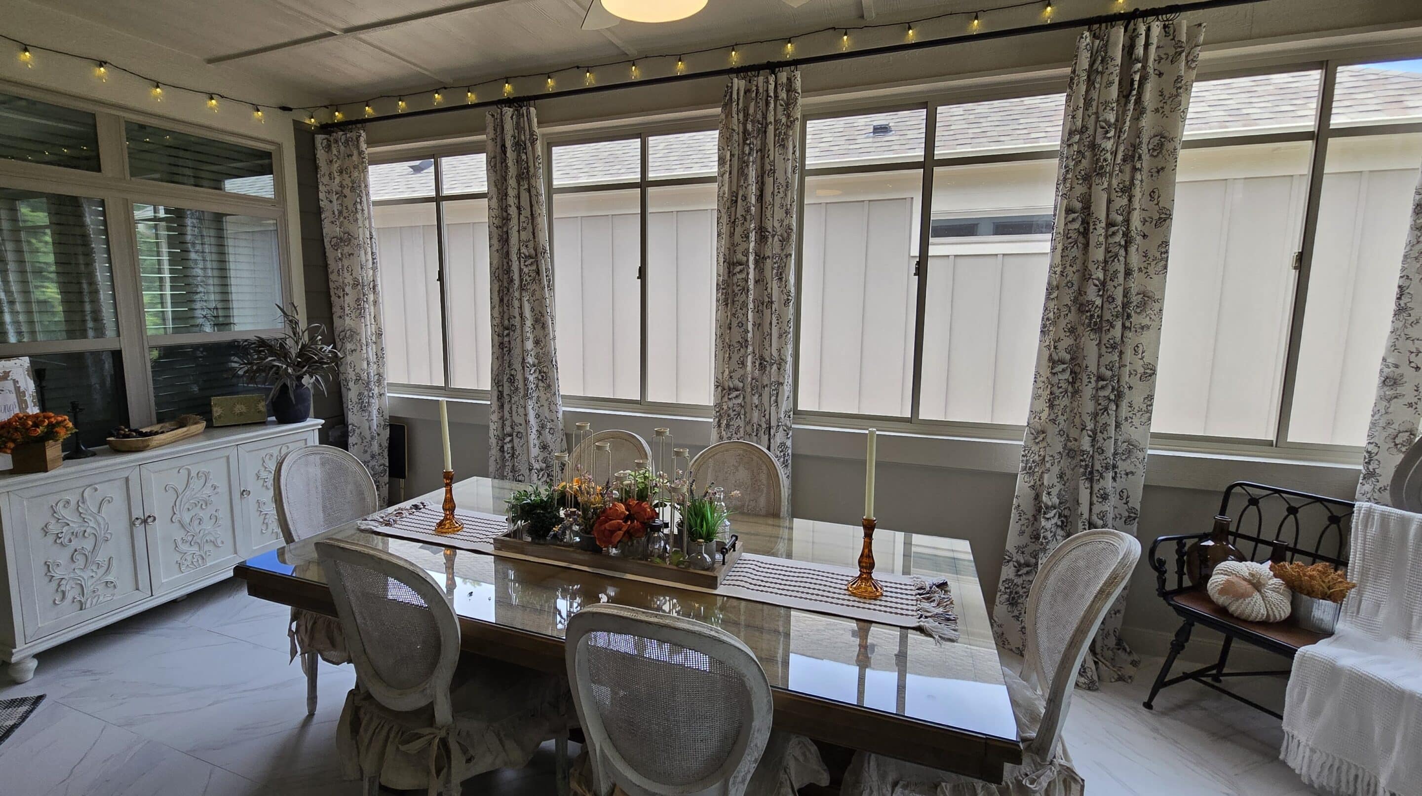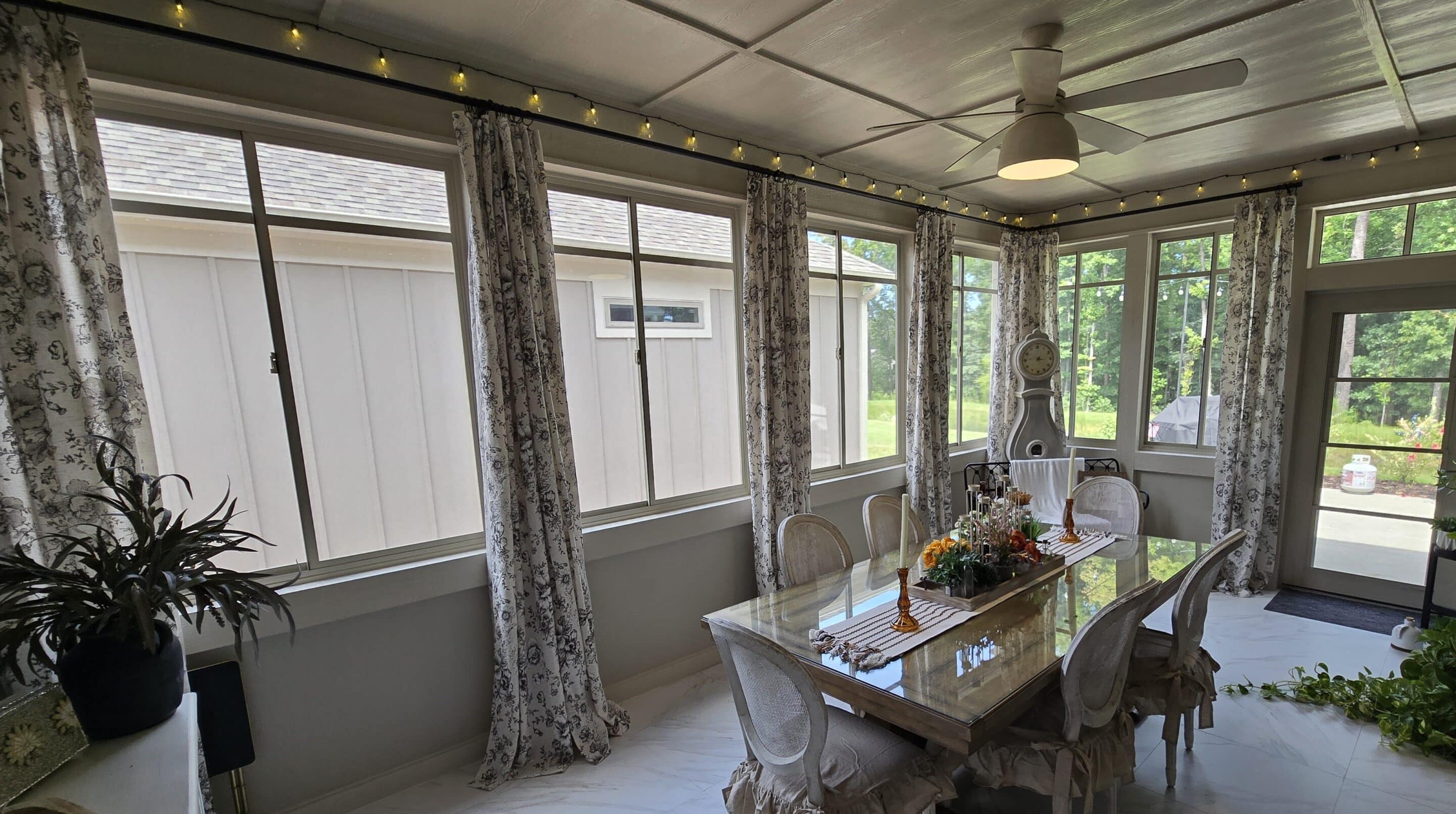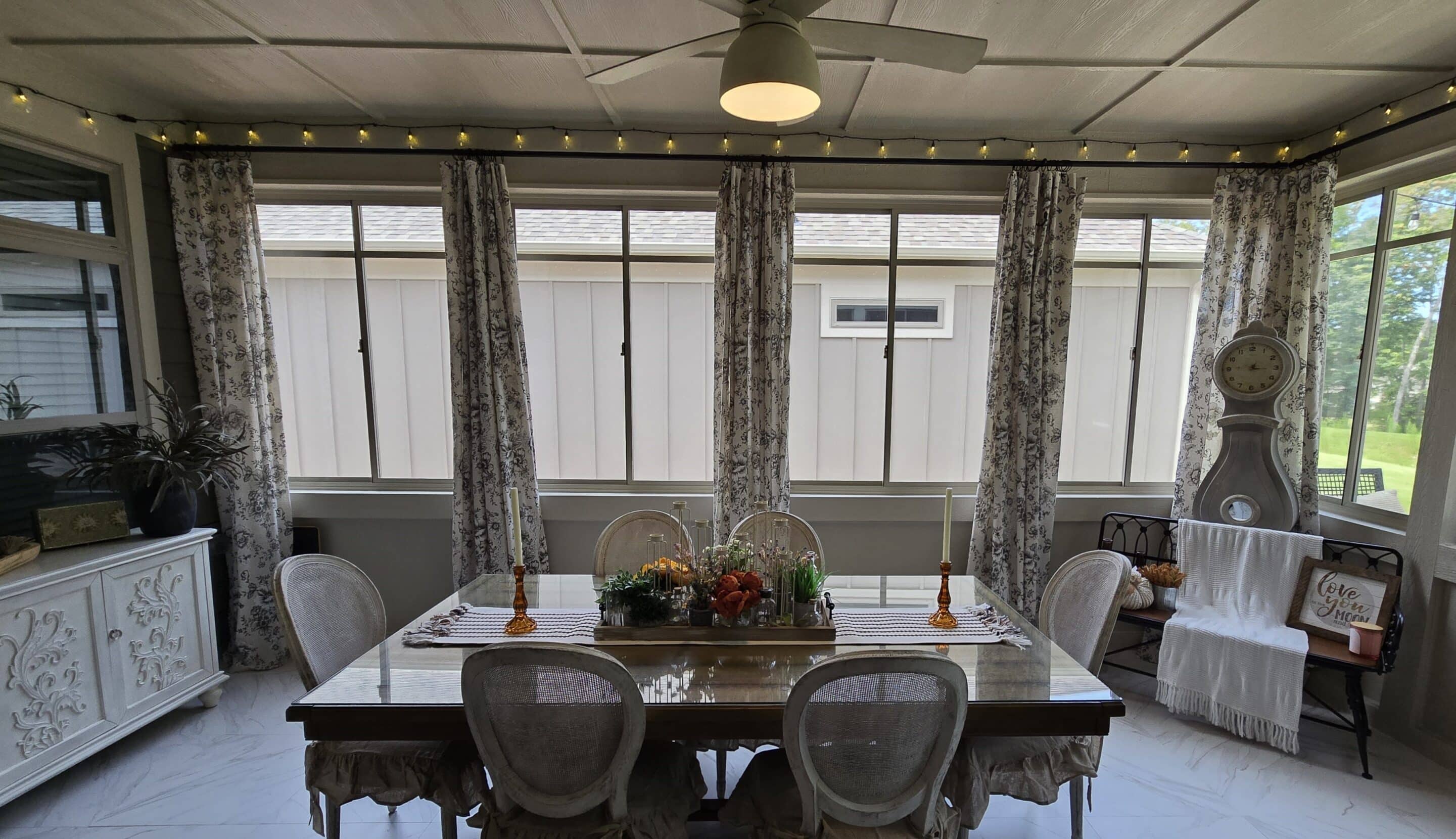 Lisa’s sunroom already had a bright and airy feel, but it needed a finishing touch to make it truly inviting. We installed decorative drapery panels that not only added softness but also beautifully framed the windows, enhancing the overall ambiance. Lisa made a great choice in the drapery selection!