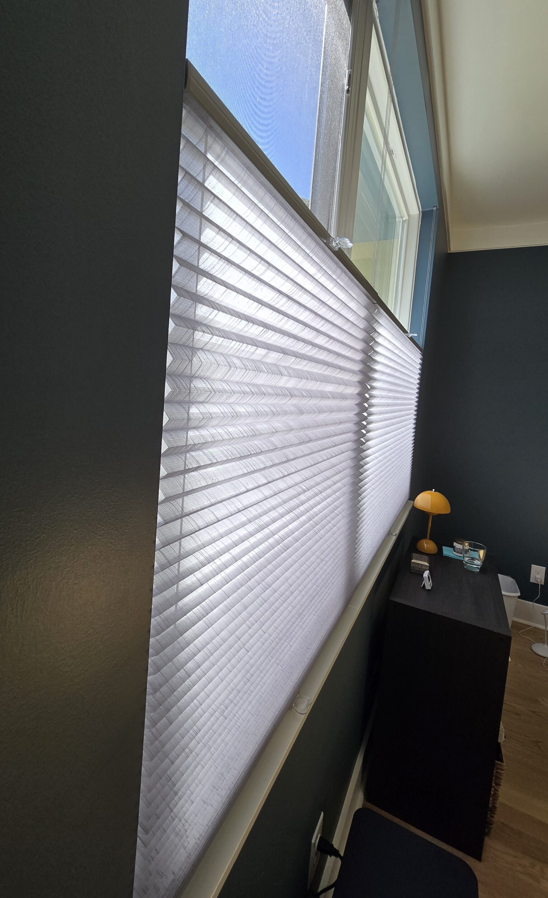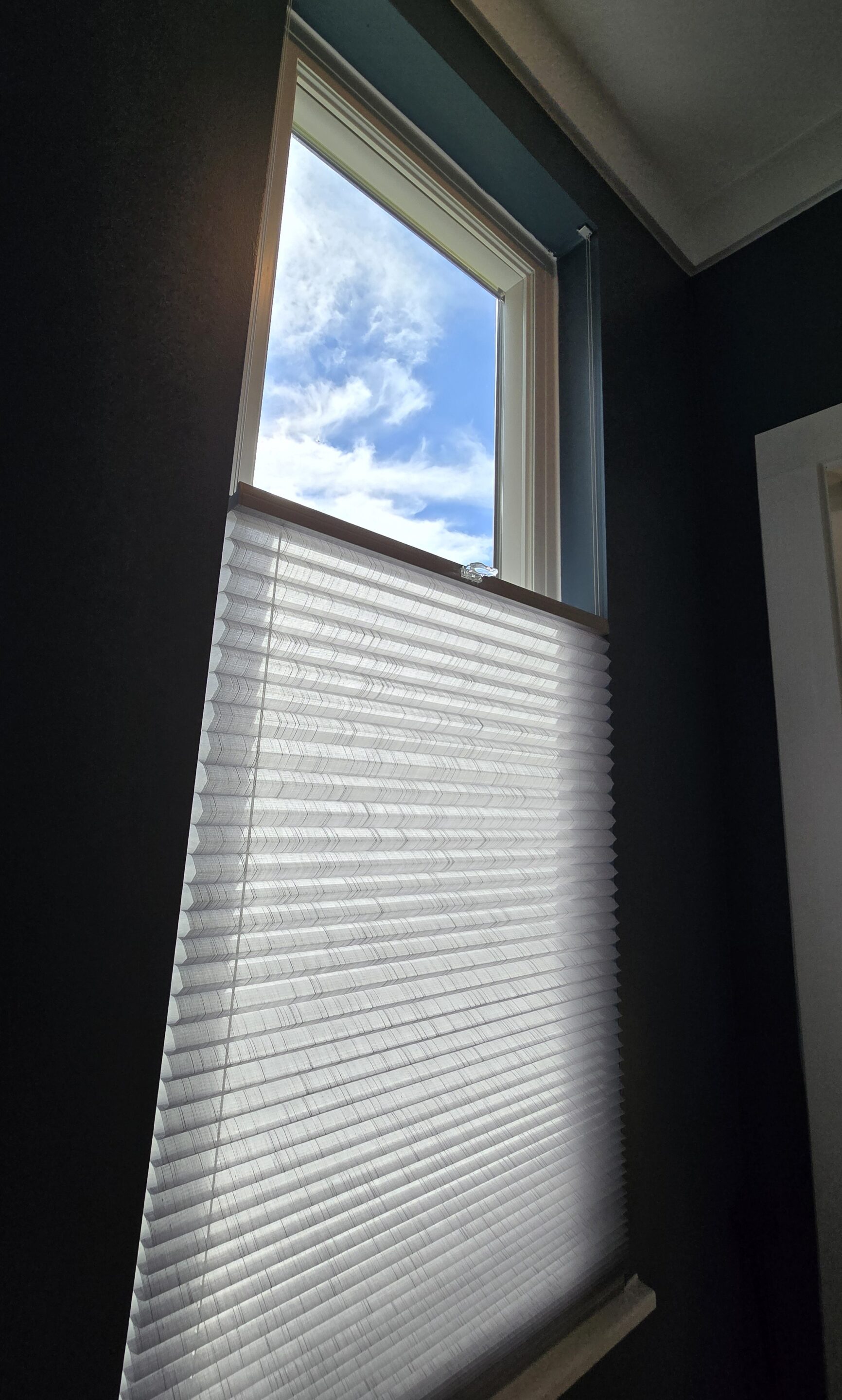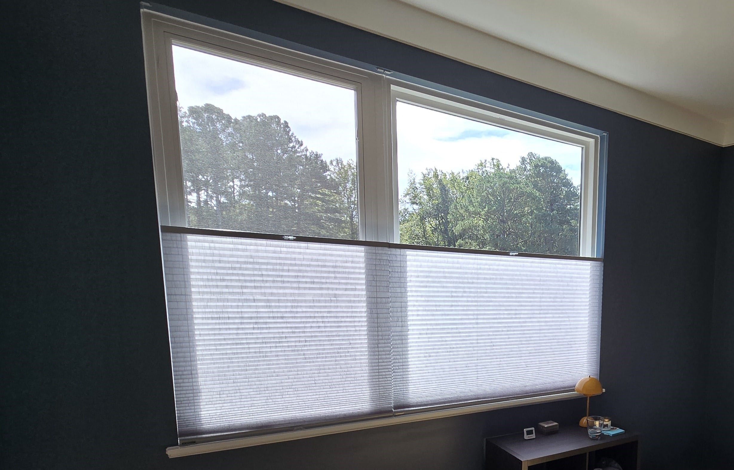 For the bathroom, we installed Norman Window Fashions Top-Down Bottom-Up SmartFit honeycomb shades in a semi-sheer, light-filtering fabric. These shades provide privacy while allowing soft natural light to fill the room. The top-down bottom-up feature offers flexibility in adjusting the amount of light, while the honeycomb design adds texture and enhances energy efficiency, helping regulate the bathroom’s temperature year-round.